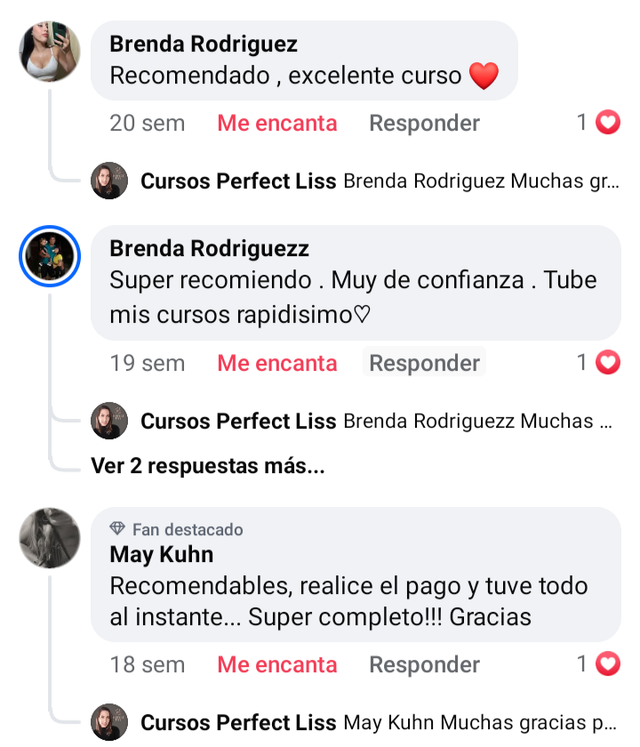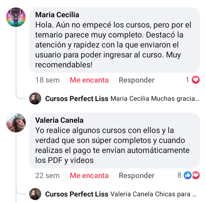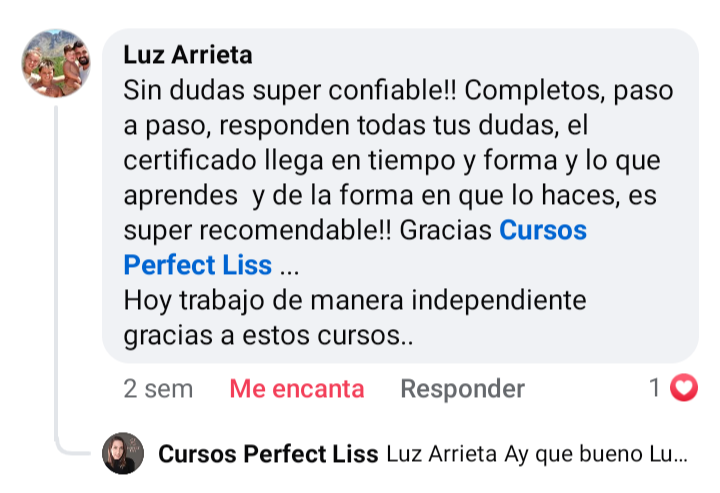Yo compré el curso de pestañas y me atendieron y dieron acceso al curso de inmediato. Volví a elegir estos cursos porque anteriormente ya había comprado el de uñas, tiene material teórico y videos explicativos. Es muy completo y la profe siempre está a disposición de responder las dudas que surjan.